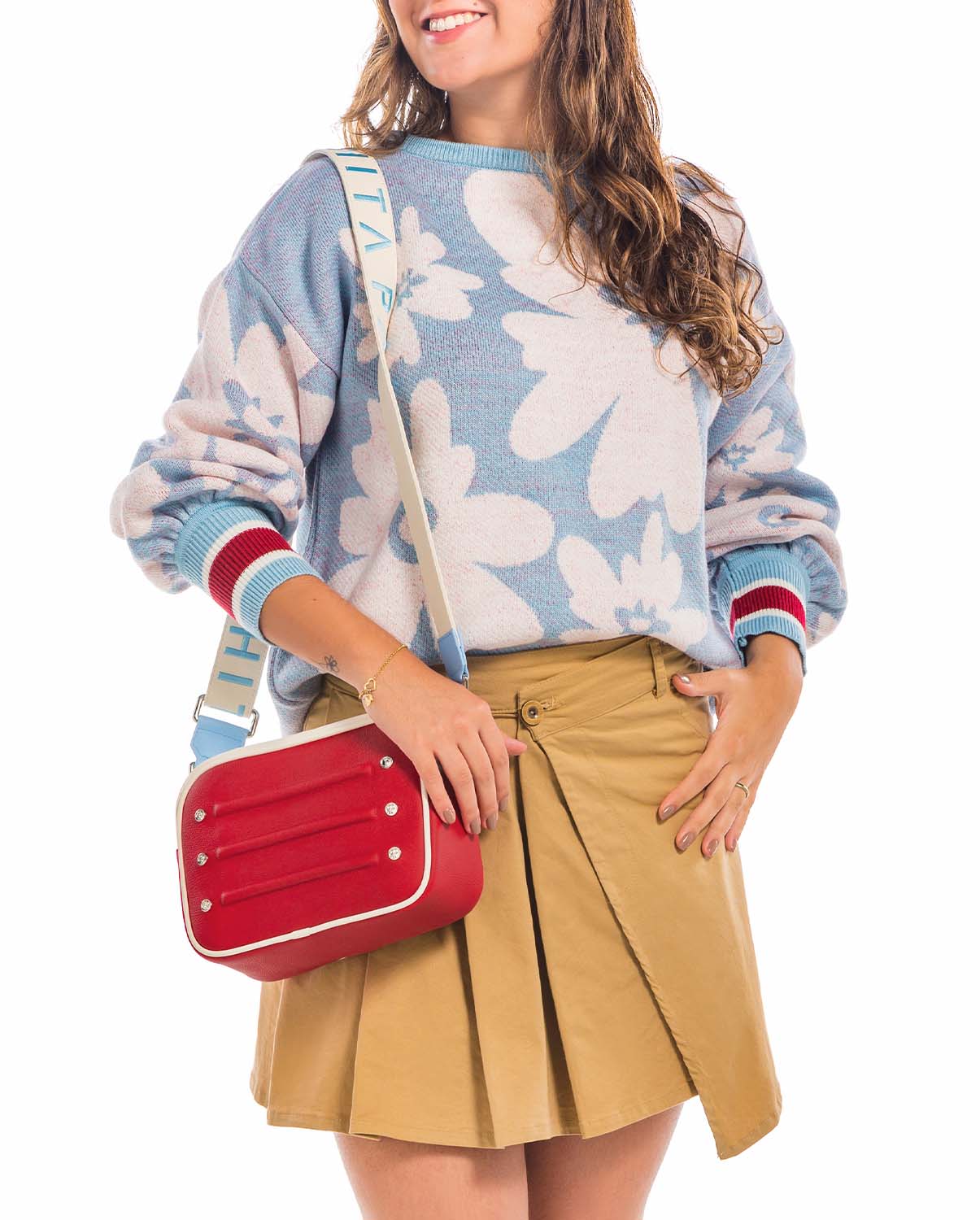 With an adjustable PVC strap, a zippered internal pocket, and sublimated lining, this crossbody bag is ideal for comfortable shoulder carrying. Its medium size makes it a versatile everyday companion, while still featuring Parchita's signature modern and artistic touch.