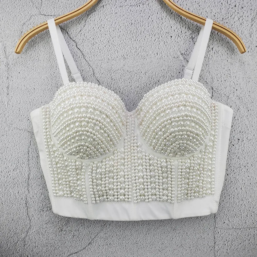 Fashionable Pearl Embellished Tube Top – Backless Street Style
